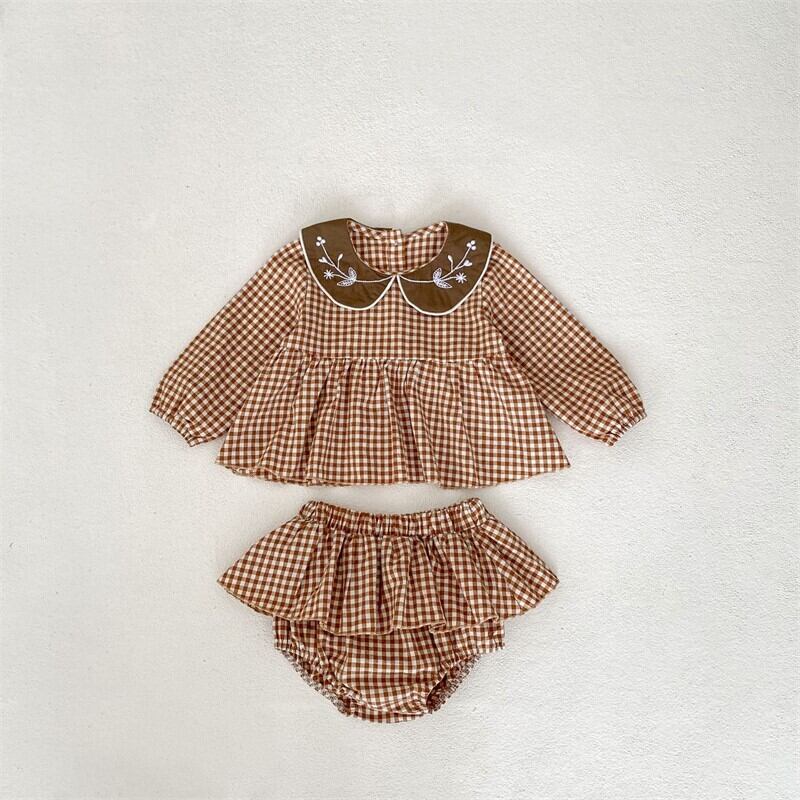 ブラウスとブルマの組み合わせで、丸襟の刺繡が可愛らしいデザインです。