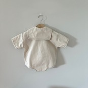 柔らかく上品な素材で仕立てた、セーラーカラーが可愛い赤ちゃん用ロンパースです。