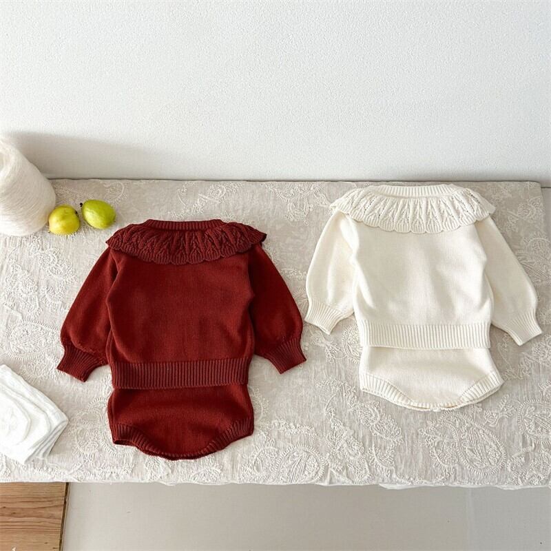 優しい肌触りのニット素材で、女の子らしいホワイトとレッドの2色展開です。
