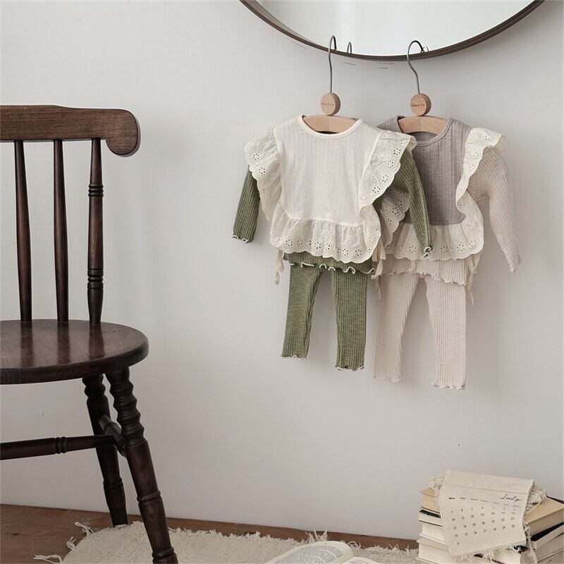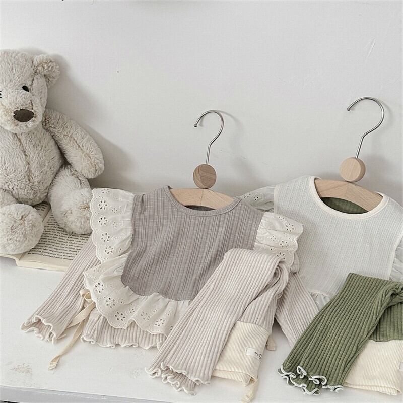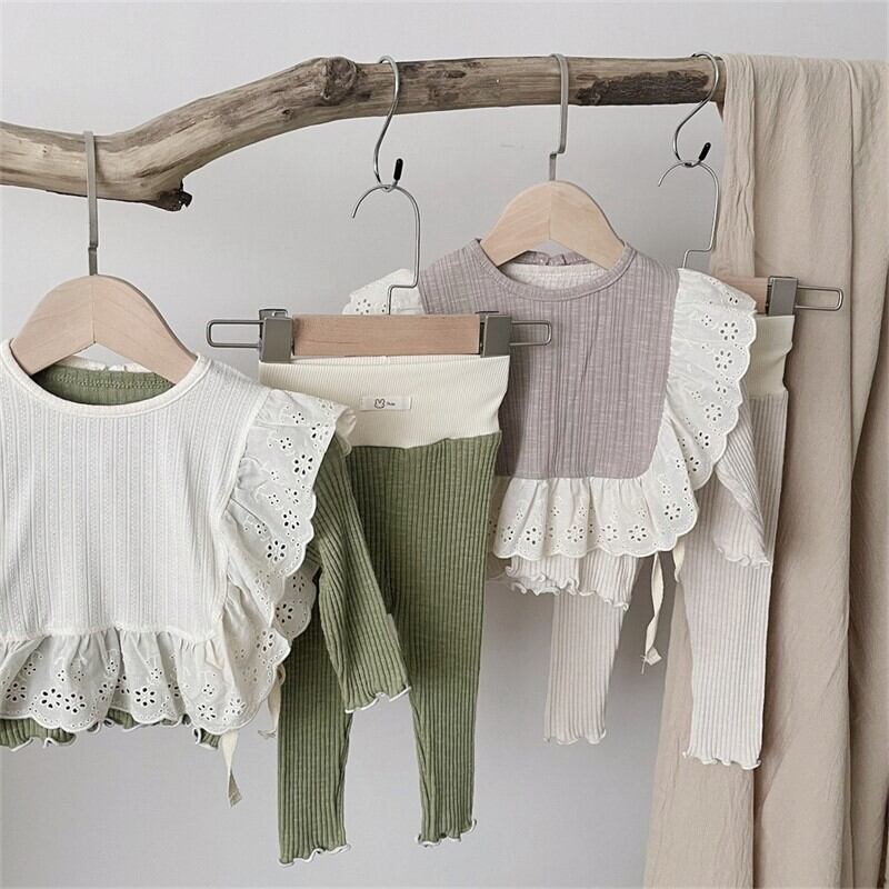 トレンドのリブ素材を使用したこのセットアップは、トップス、スパッツ、スタイの3点セットです。