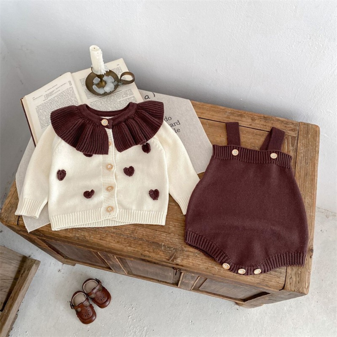 秋らしい色味がおしゃれなニット素材のロンパースです。