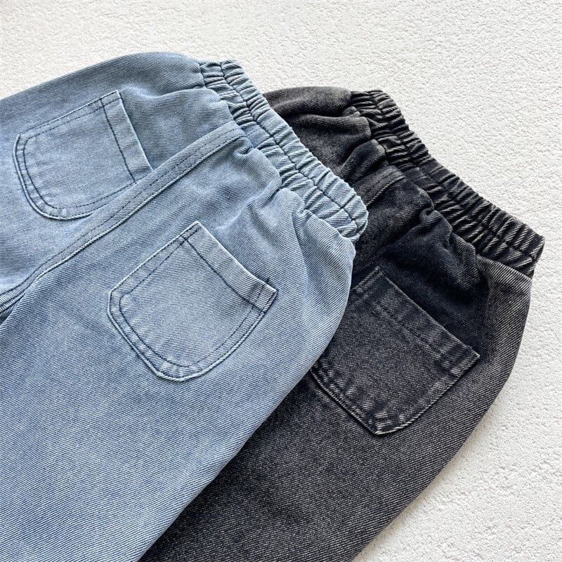 可愛らしいボタンデザインがポイントのデニム風パンツです。