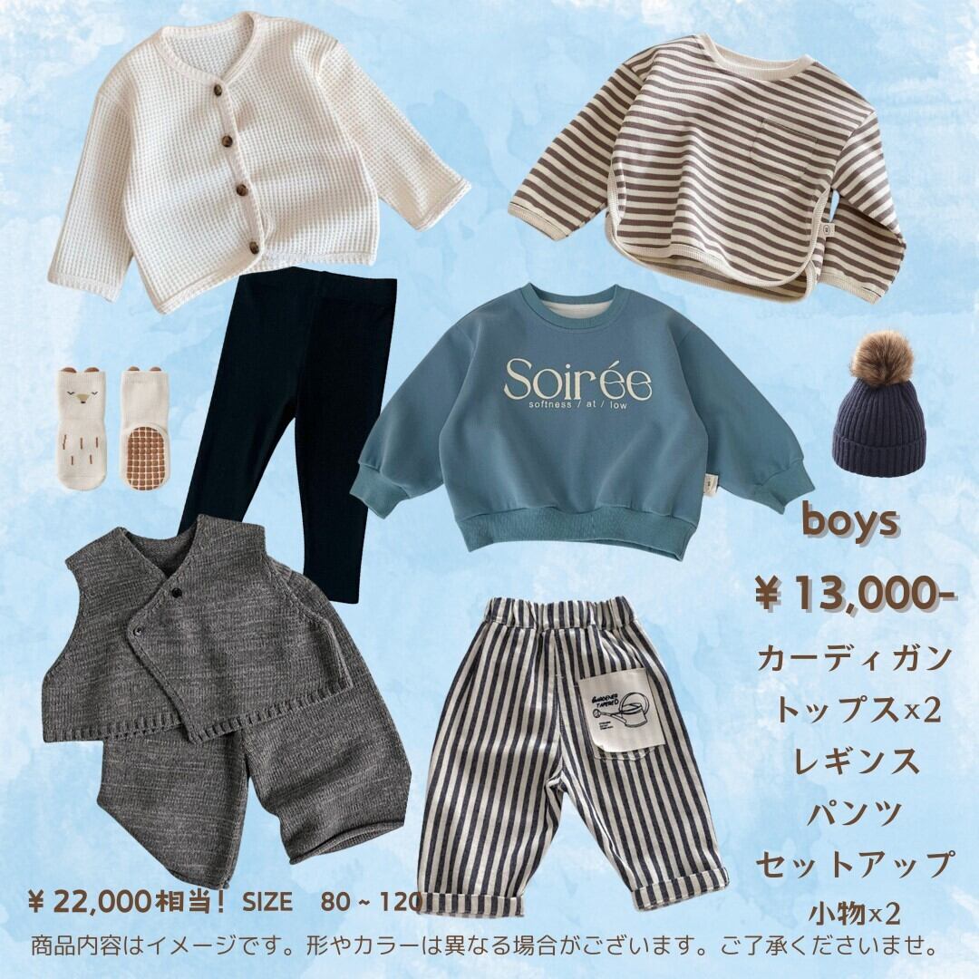 カーディガン・トップス・レギンス・パンツ・スウェットプルオーバー・セットアップアイテム・小物が入ったセットです!