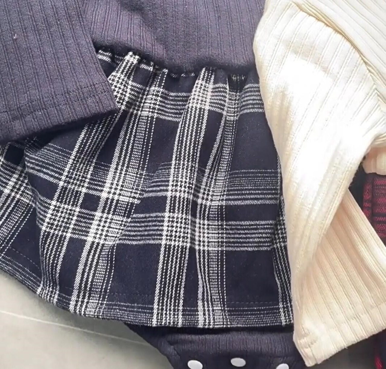 暖かいリブ素材を使用し、寒い冬にぴったりなデザイン。スカート部分はおしゃれなタータンチェック柄で、赤ちゃんをよりキュートに演出します。特別な日のお出かけに、また普段使いにも大活躍するアイテムです♪
